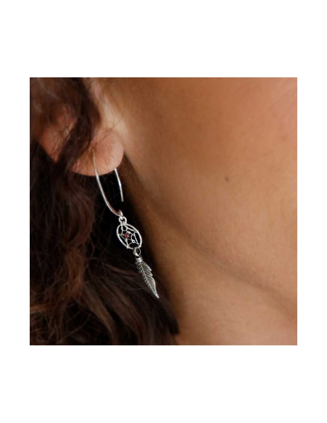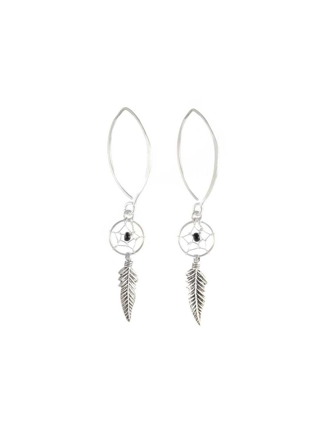 These beautiful dreamcatcher earrings are handcrafted from sterling silver, with either a Black Onyx or Coral. Delicately handcrafted in a bohemian style, the beautiful silver web is fastened to a fine sterling silver ear wire.