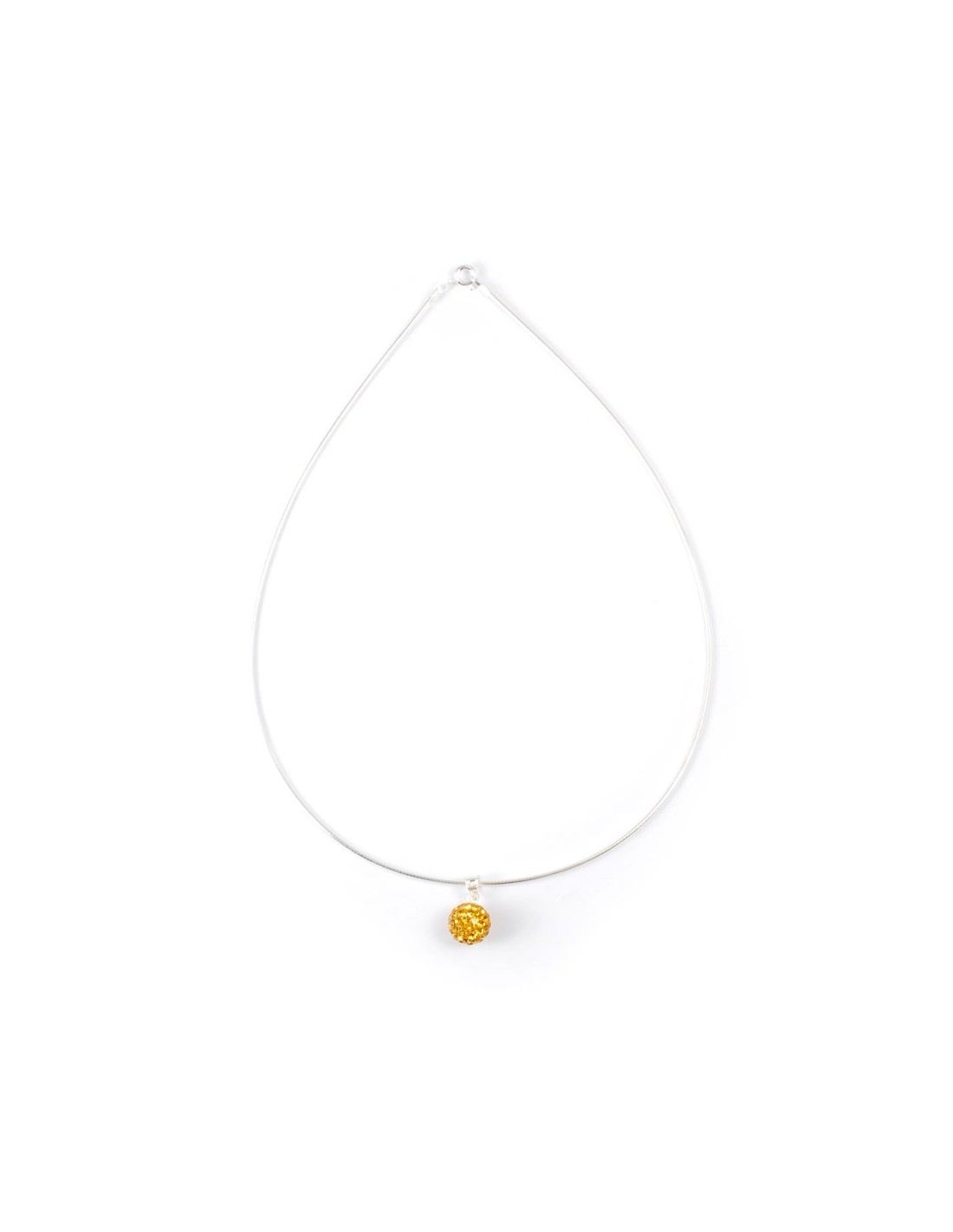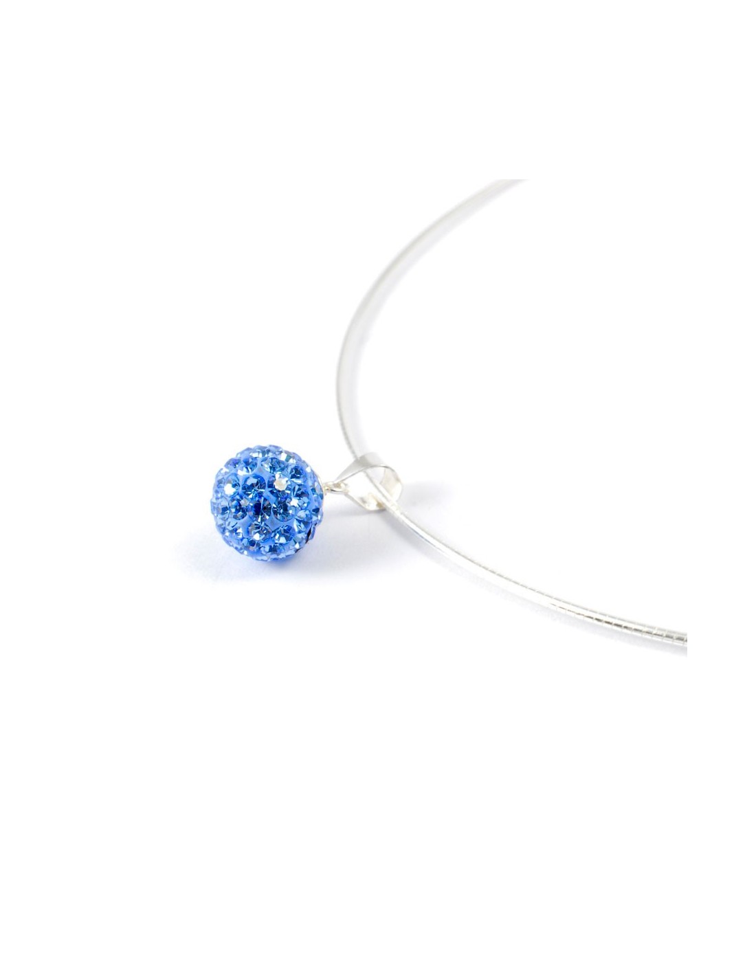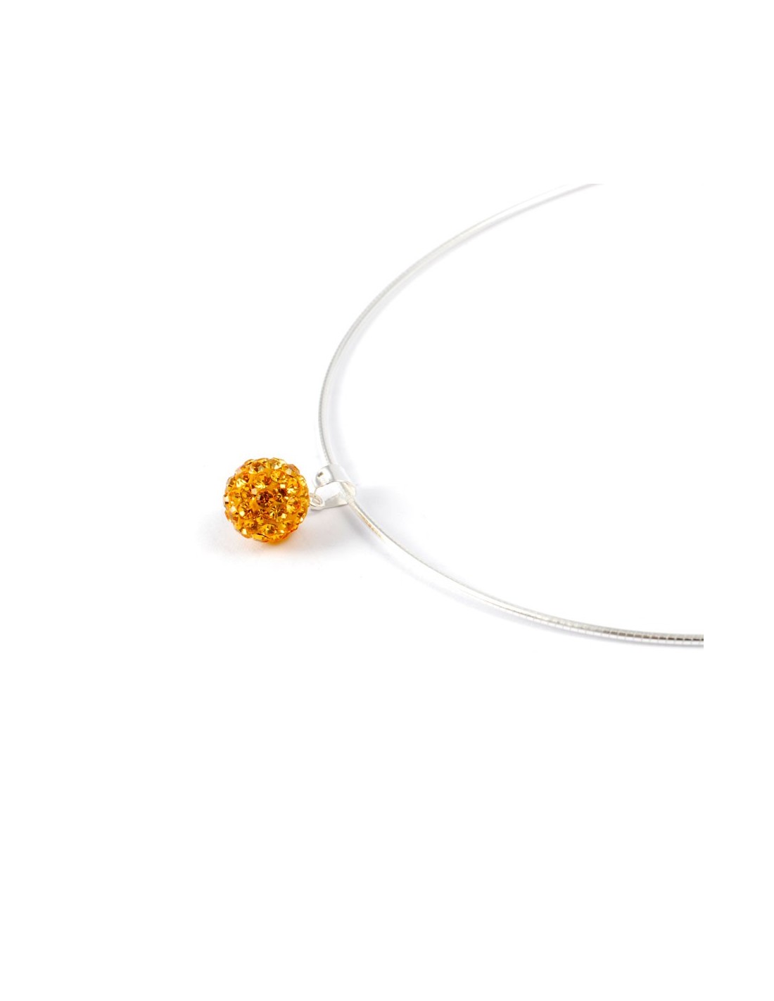 This stunning handcrafted necklace features a semi-rigid silver cable and a gorgeous sphere of colourful rhinestone, crafted from sparkling rock crystal.
