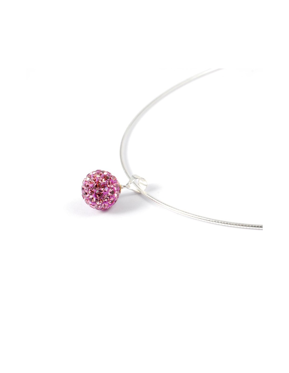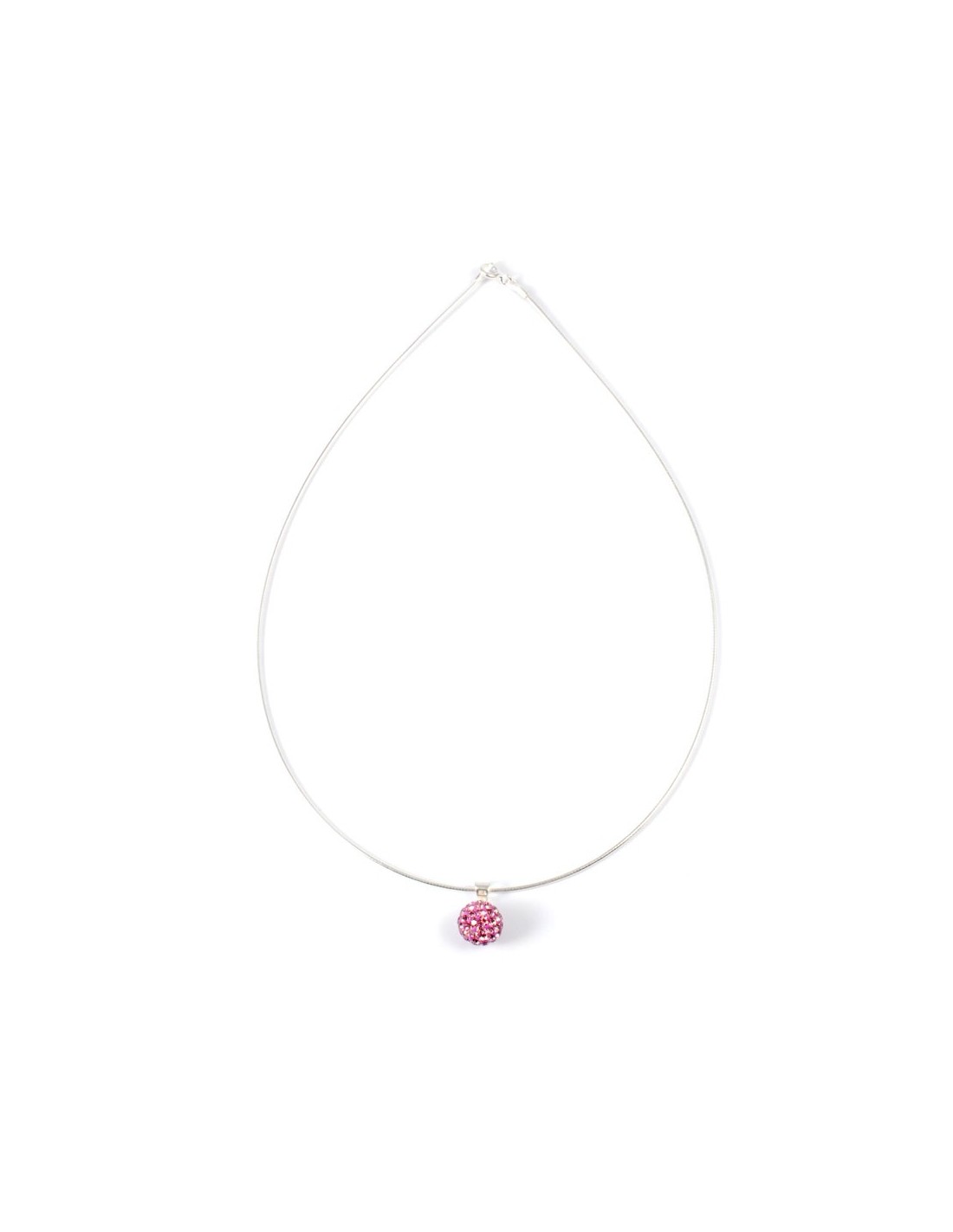 Be seduced by this gorgeous semi-rigid necklace in silver, adorned with a pendant sphere in "Shamballa" style.