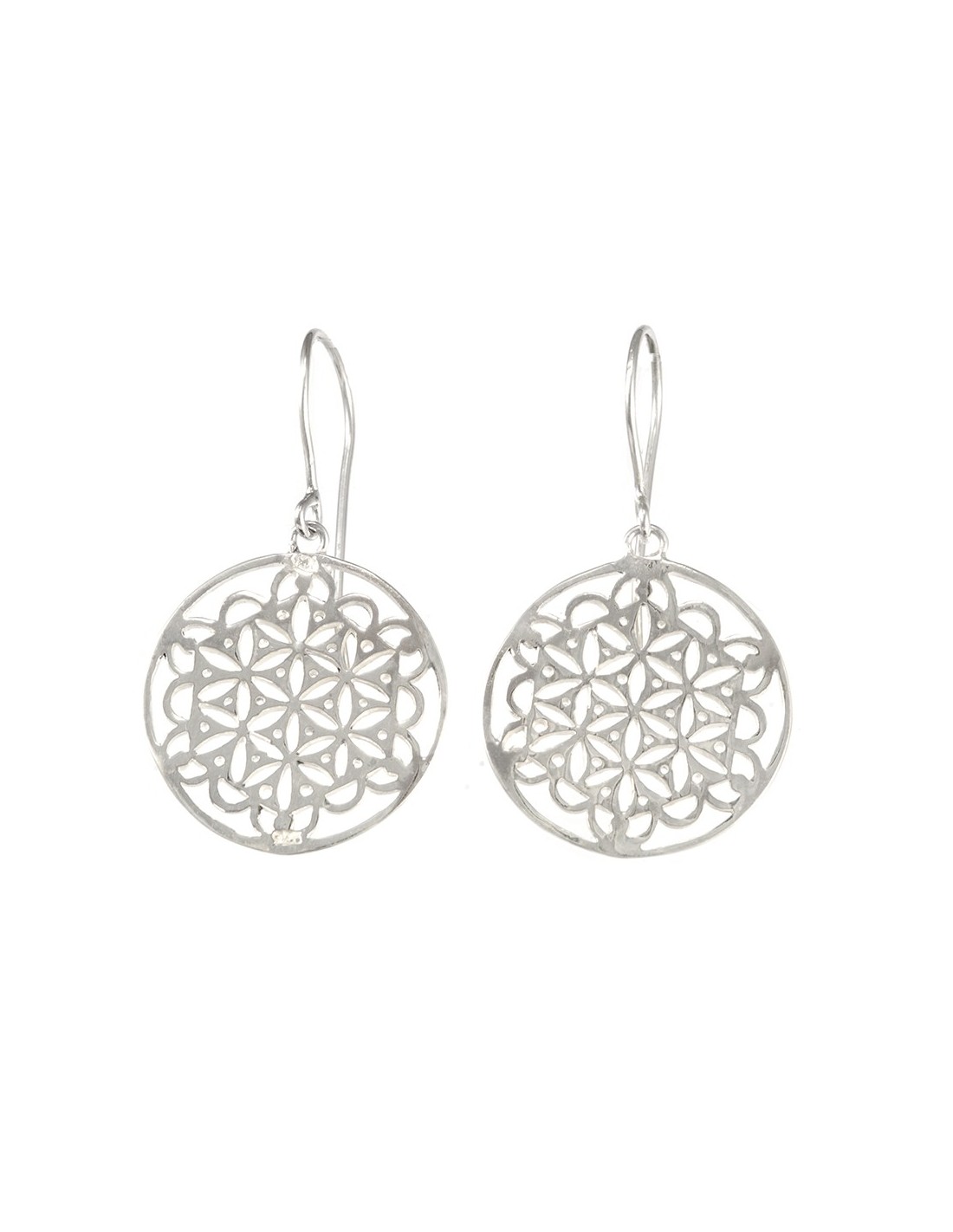 Boucles argent rondes fleur de vie