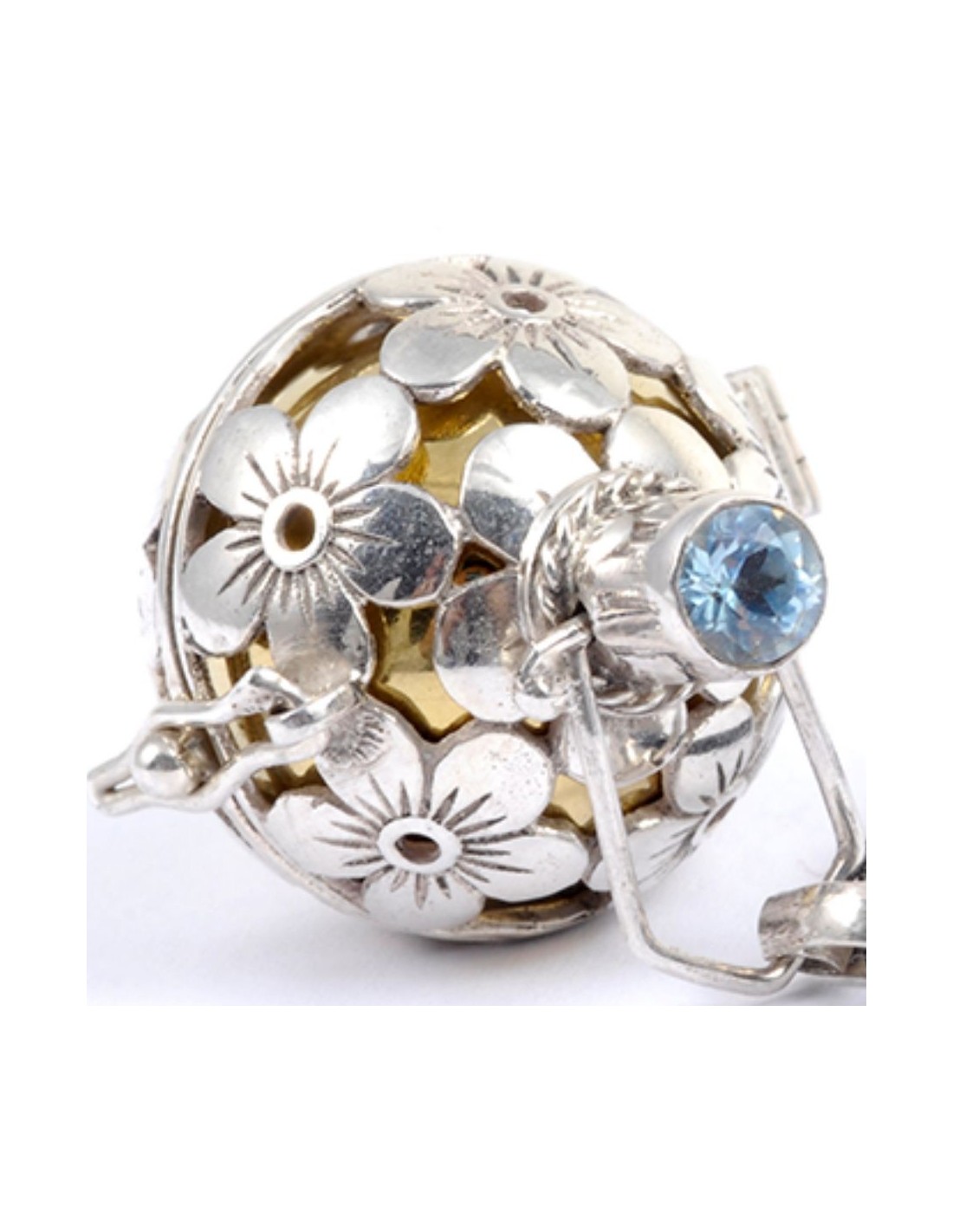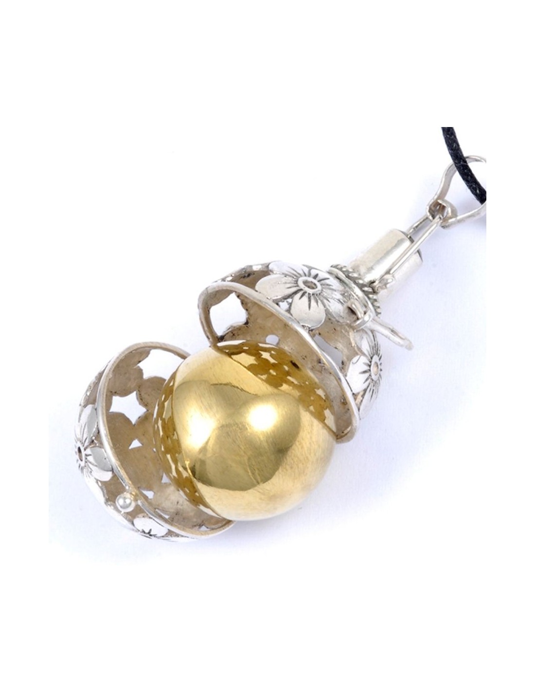 -€30.00 Product available with different options Silver Jewellery Silver Bola Cage with Coloured Ball Boutique Nirvana €35.83 €65.83 This magnificent bola cage pendant is handcrafted in sterling silver and adorned with spiral patterns forming elegant arabesques. The cage contains a ball of enamelled colour, either in white, black or turquoise. Fine black cord included. Every piece is handmade and completely unique. All products are fair trade. View