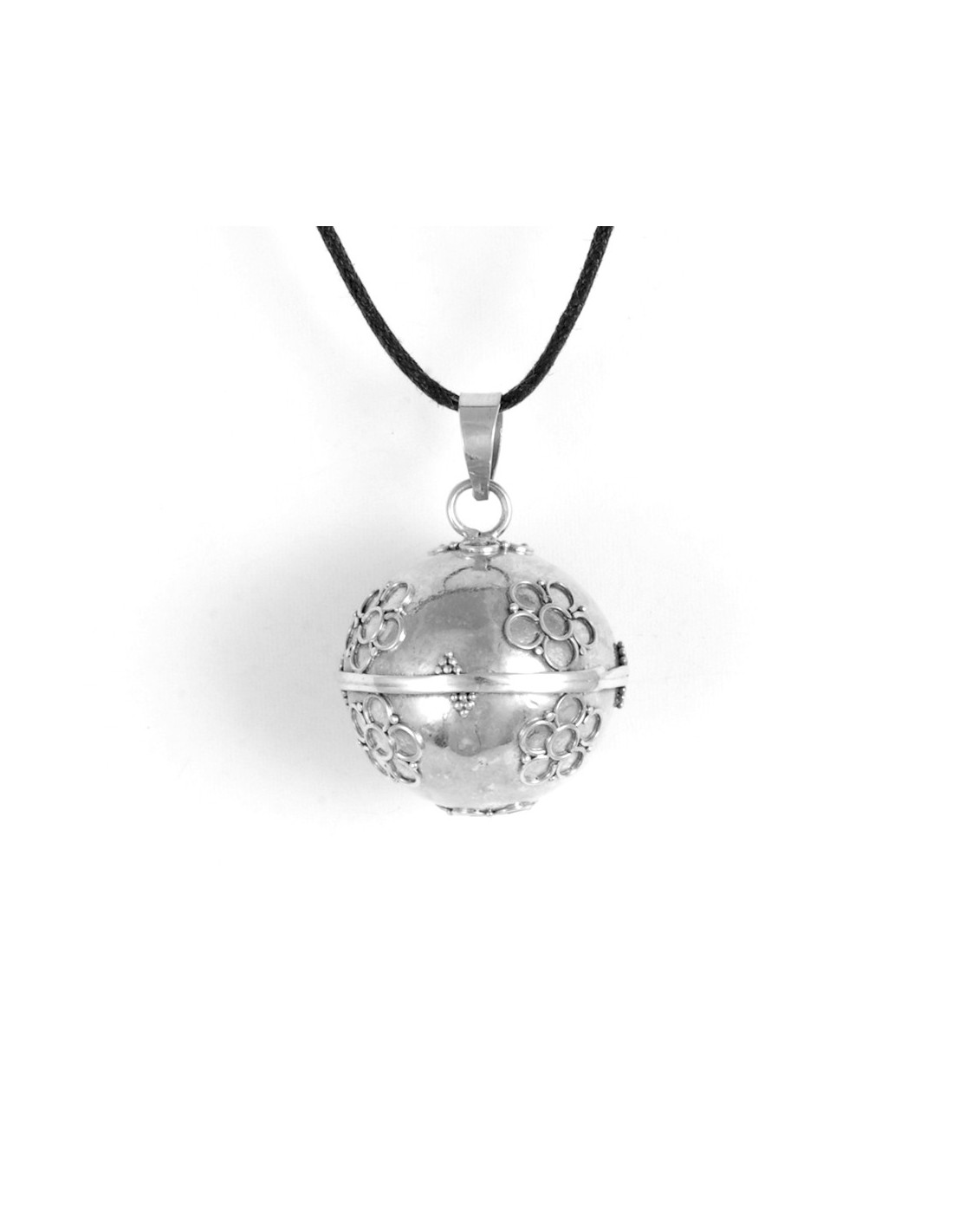 -€30.00 Product available with different options Silver Jewellery Silver Bola Cage with Coloured Ball Boutique Nirvana €35.83 €65.83 This magnificent bola cage pendant is handcrafted in sterling silver and adorned with spiral patterns forming elegant arabesques. The cage contains a ball of enamelled colour, either in white, black or turquoise. Fine black cord included. Every piece is handmade and completely unique. All products are fair trade. View