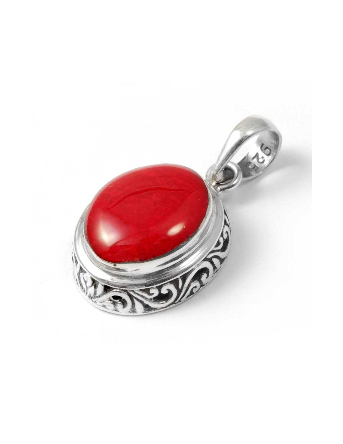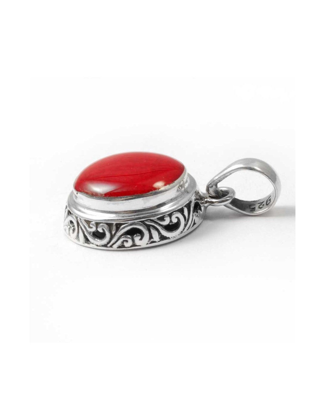 Embossed Gemstone Pendant - Silver Jewellery - Boutique Nirvana