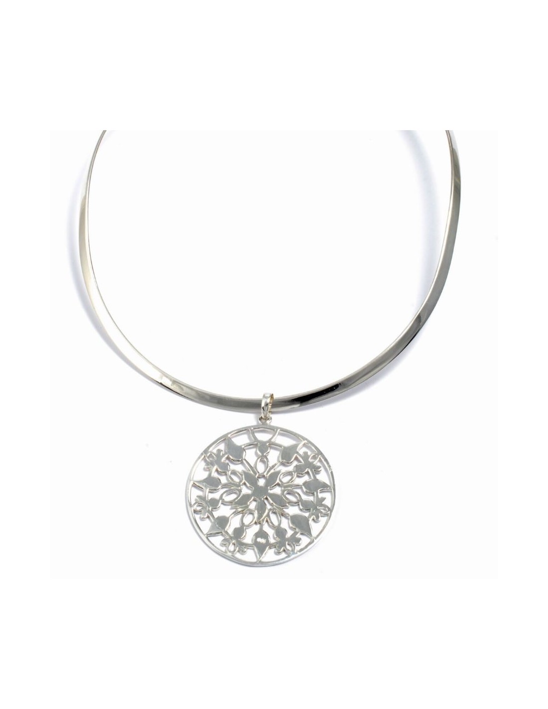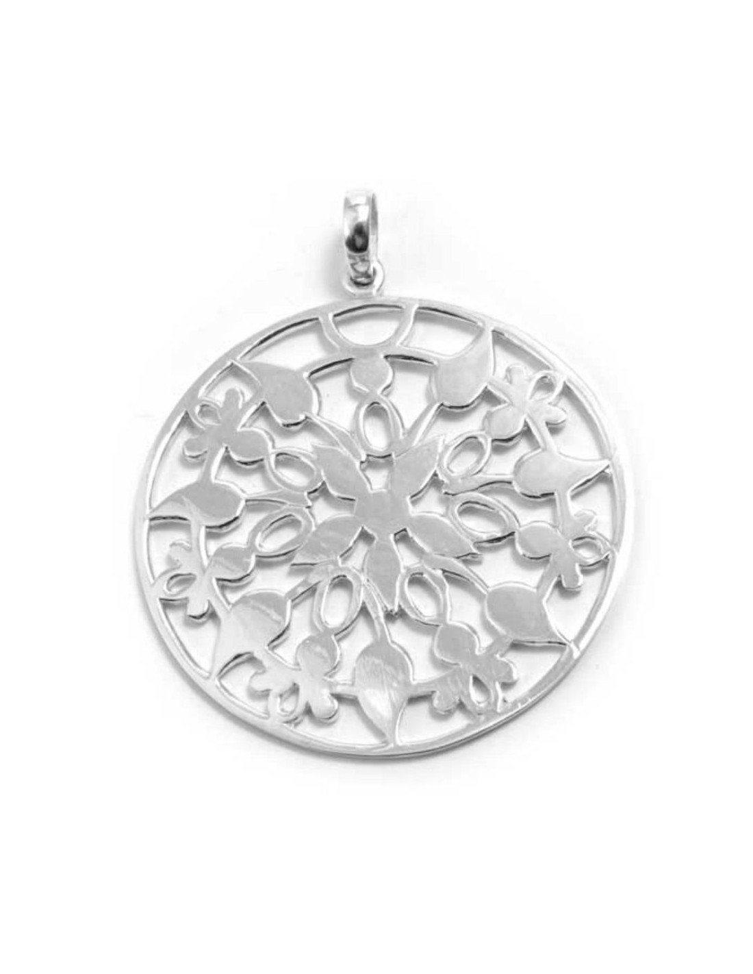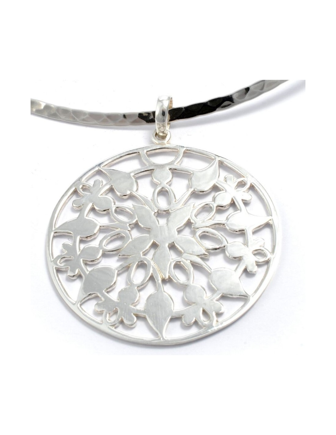 A large sterling silver pendant that has been lovingly handcrafted by artisans in Indonesia. This is a beautifully elegant pendant that is flattering and timeless.