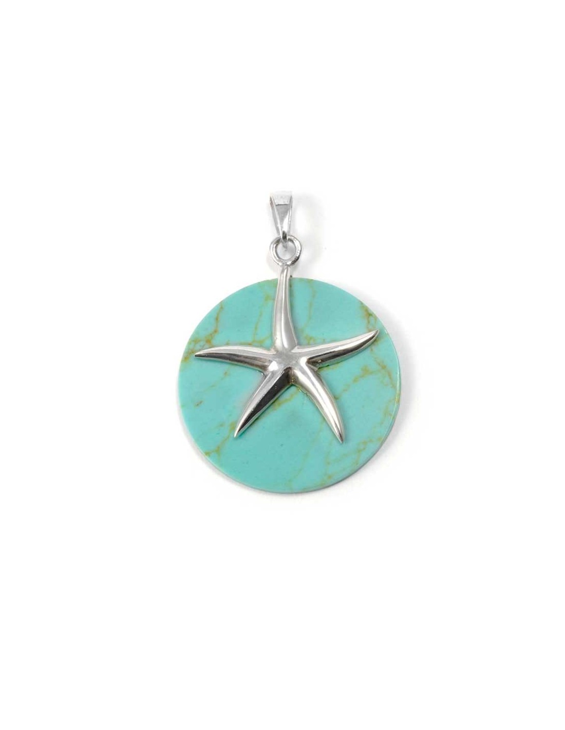 Beautiful Circular Natural Stone with Silver Starfish