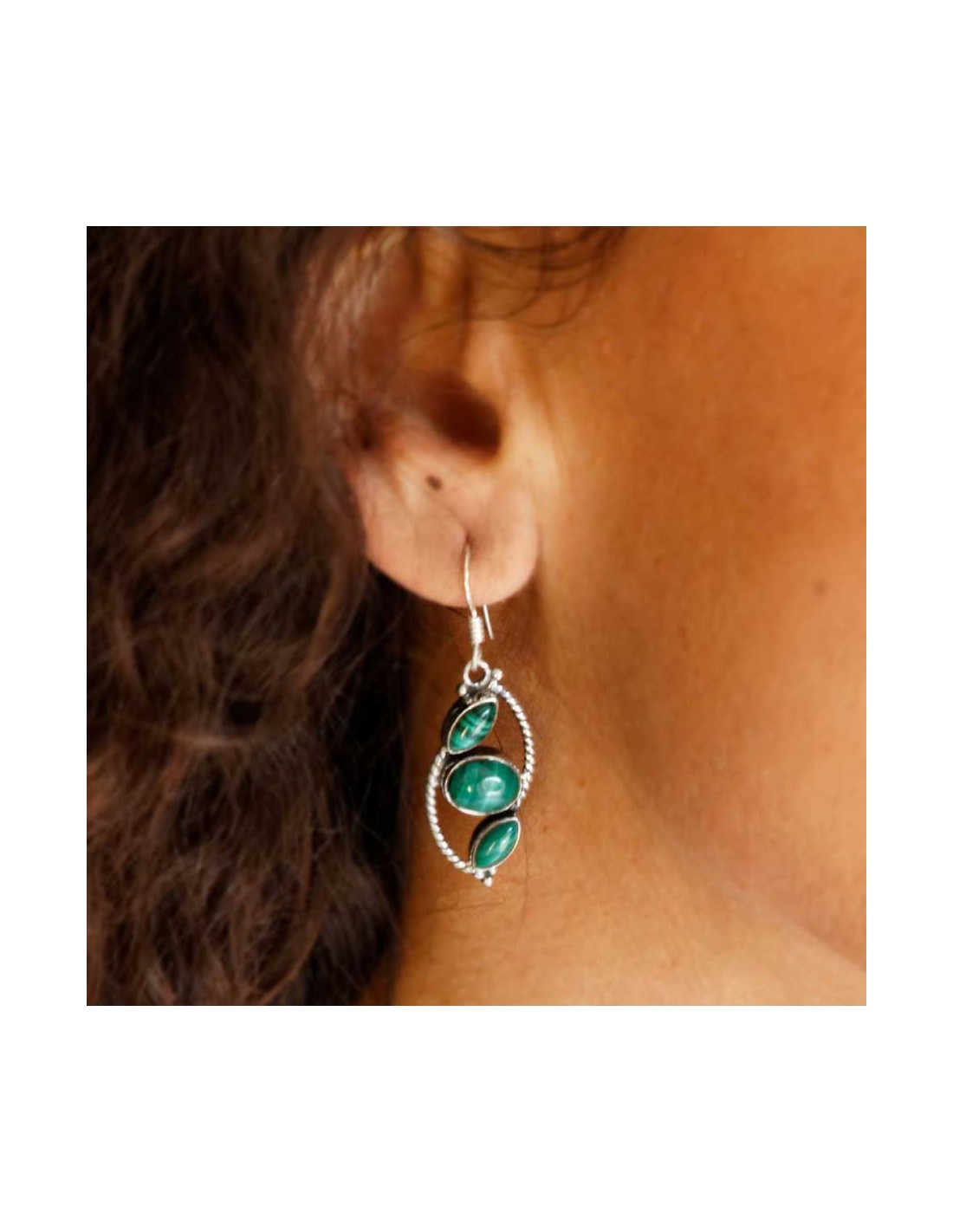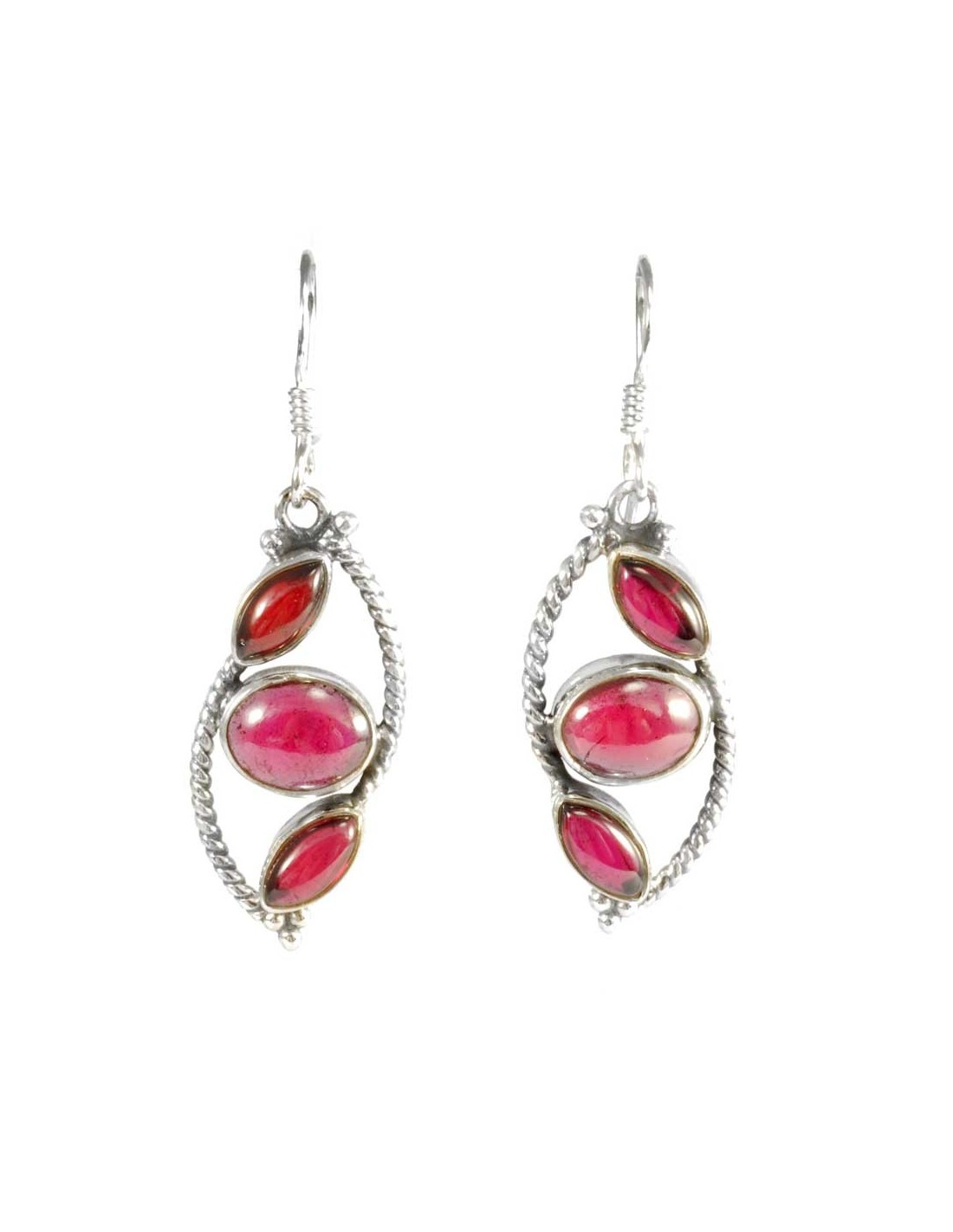 These unique handcrafted earrings showcase three beautiful lozenge-shaped natural stones of your choice within a braided sterling silver border. A stunning piece of jewellery, perfect to jazz up an outfit!
