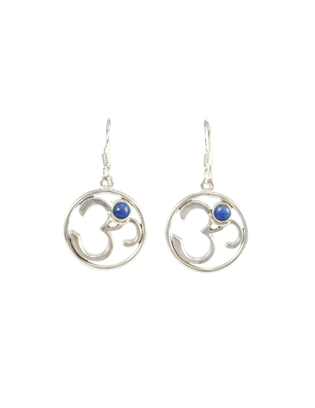 Silver Om Earrings with Natural Stone