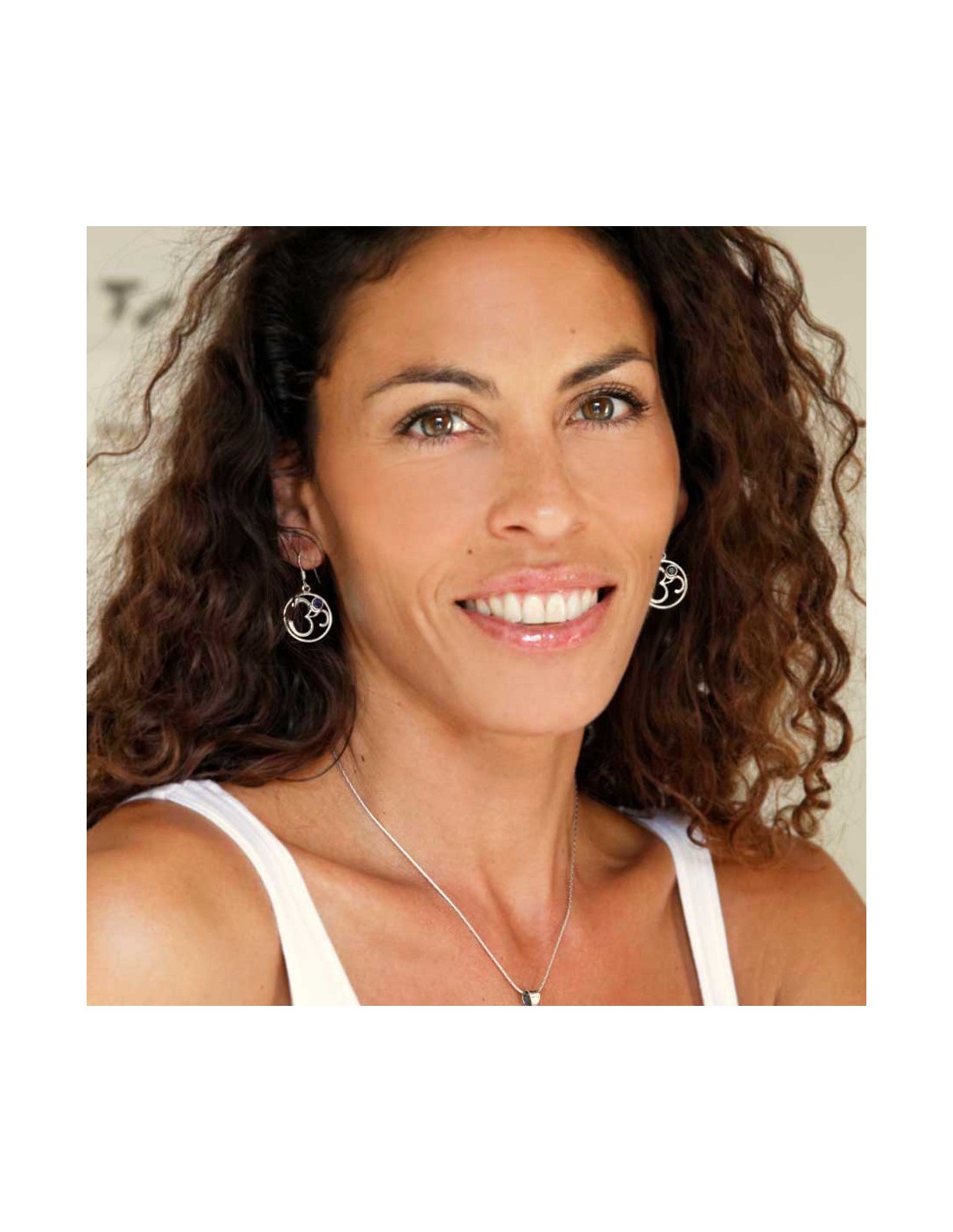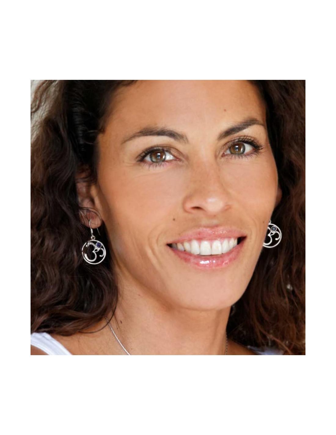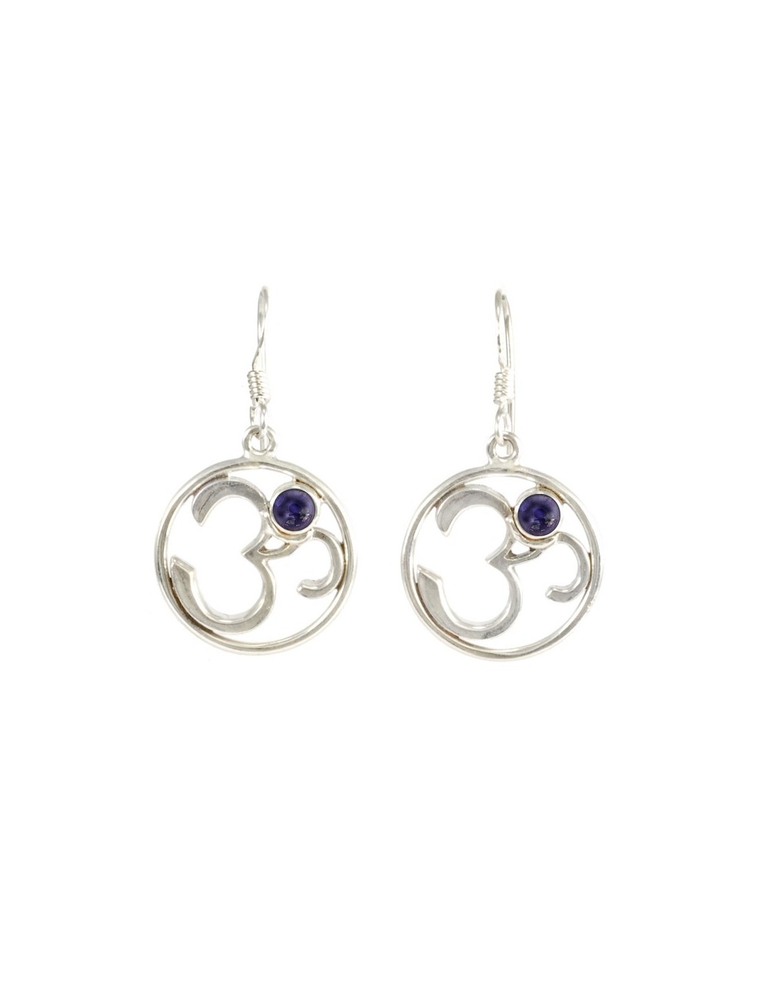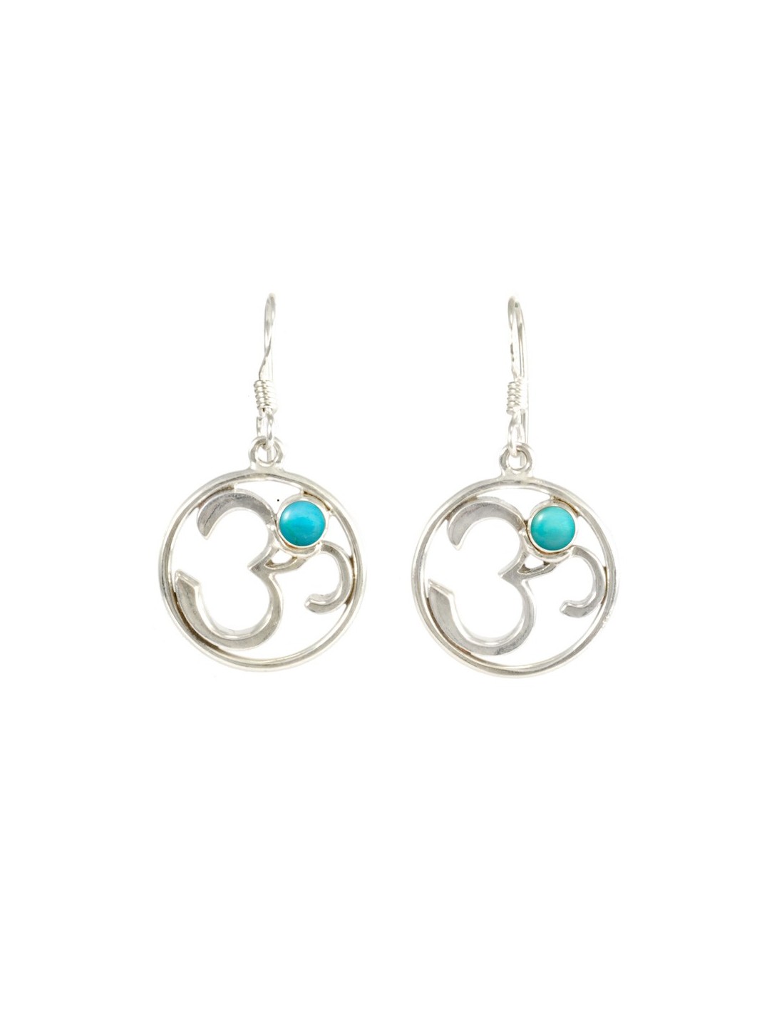Silver Om Earrings with Natural Stone