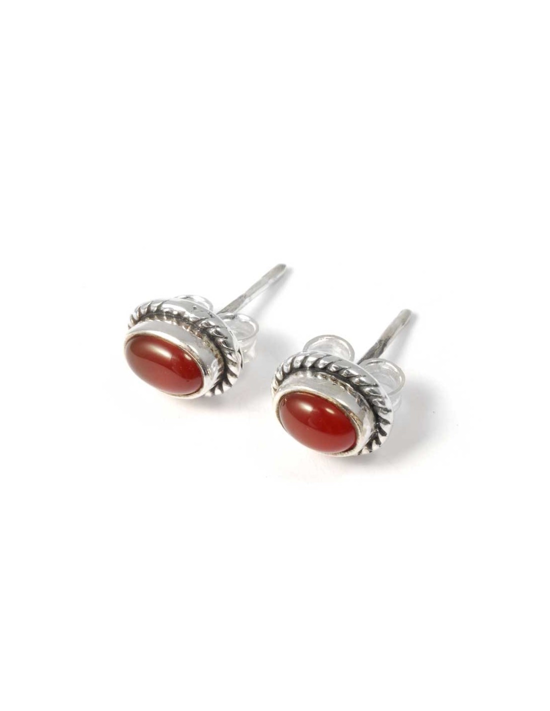 These beautiful ethnic stud earrings are made from sterling silver and an oval natural gemstone of your choice. The detailed silver border has been handcrafted using traditional jewellery-making techniques.