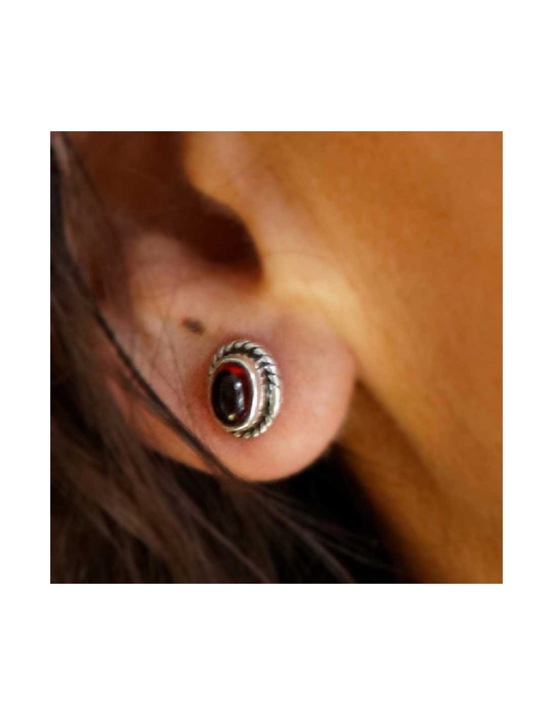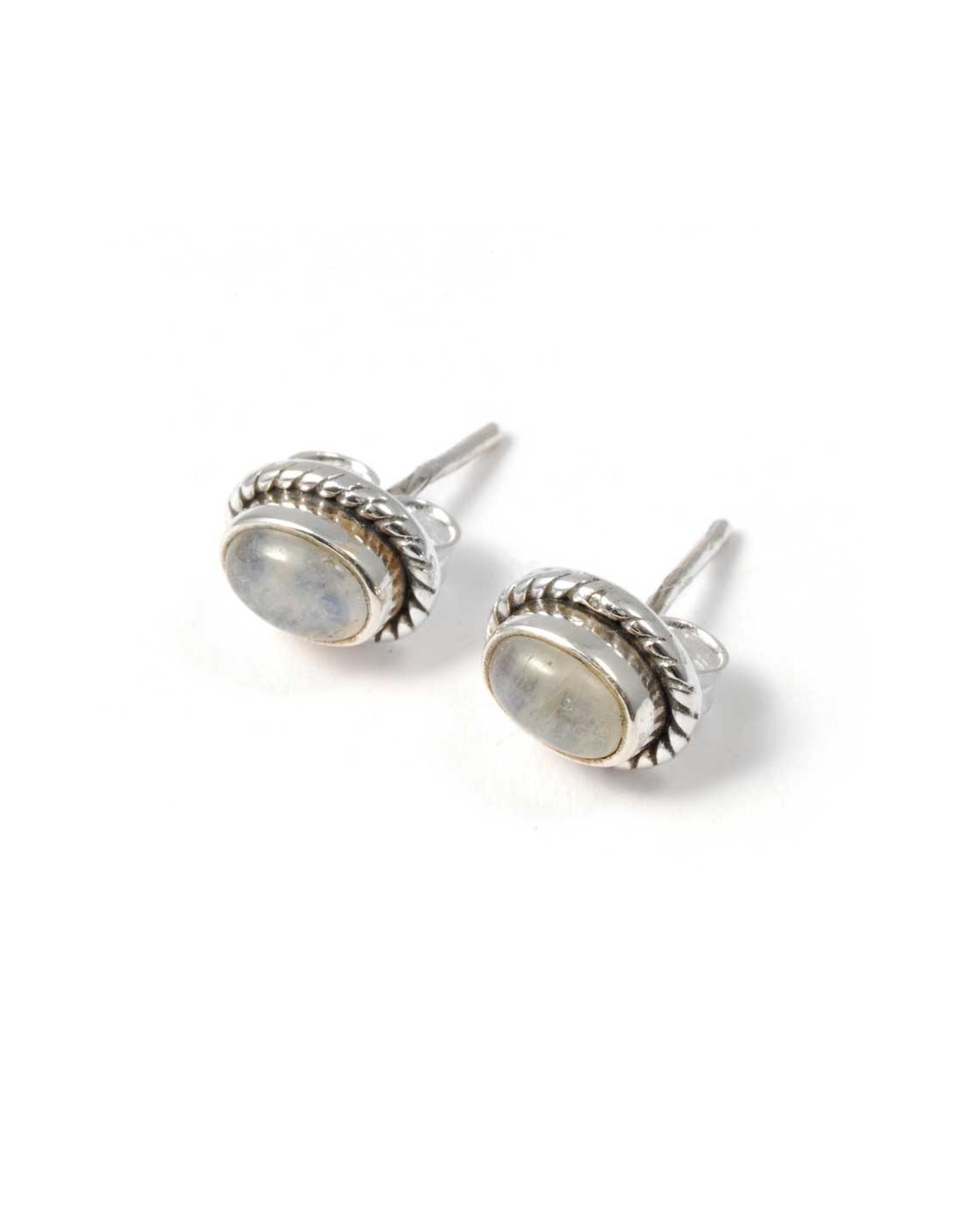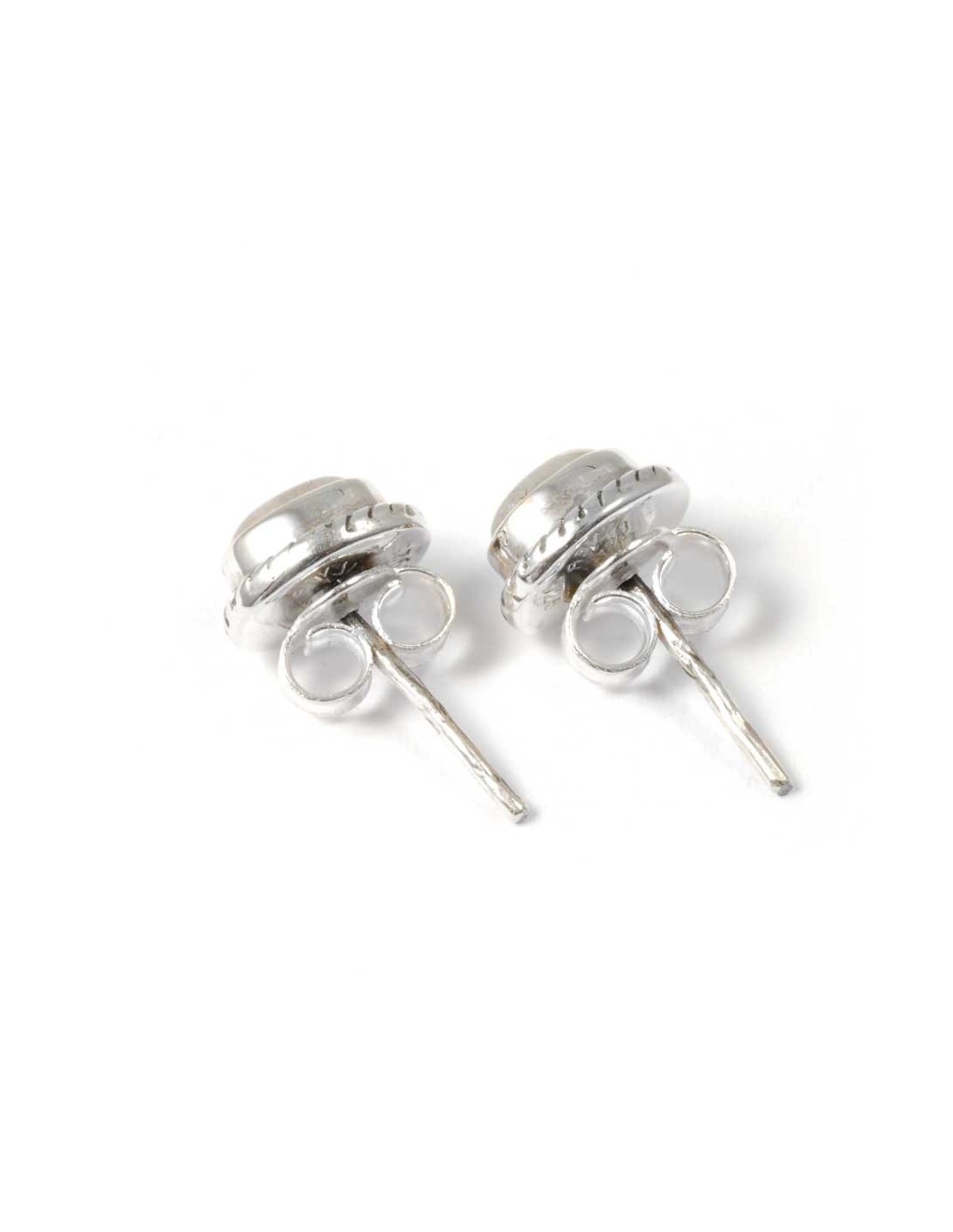These beautiful ethnic stud earrings are made from sterling silver and an oval natural gemstone of your choice. The detailed silver border has been handcrafted using traditional jewellery-making techniques.