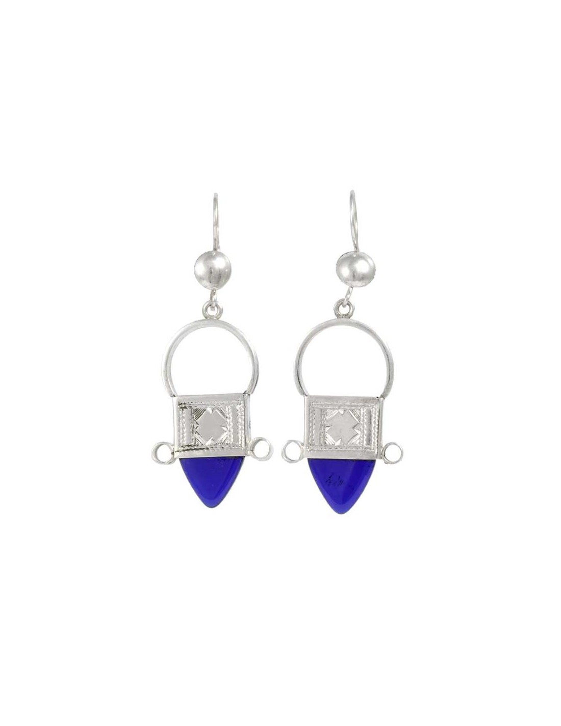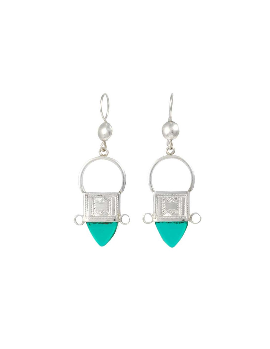 A gorgeous pair of dangle earrings from the Tuareg tribe in West Africa. Featuring detailed silver-work and an authentic coloured glass drop – they are the perfect gift or a wonderful addition to your collection.