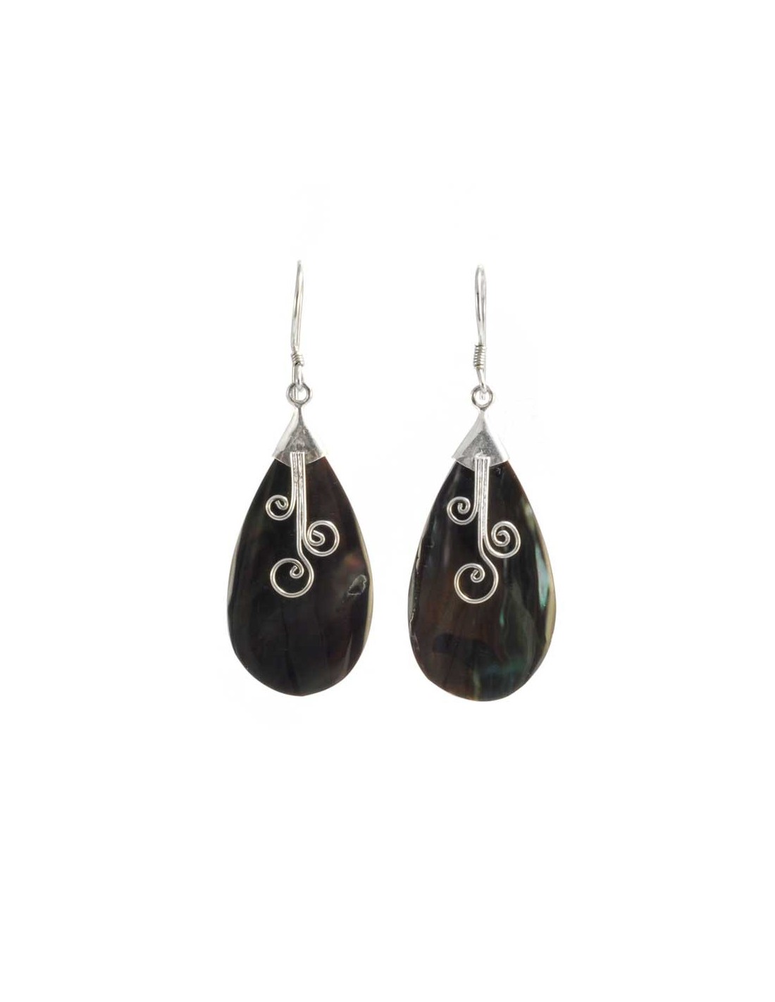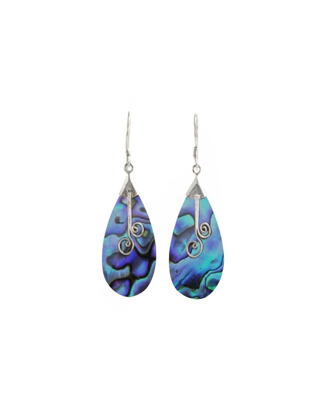 Beautiful long drop earrings in Abalone shell with beautiful sterling silver spirals. These stunning earrings are handcrafted in Indonesia, and are the perfect accessory to bring a splash of colour to your outfit.