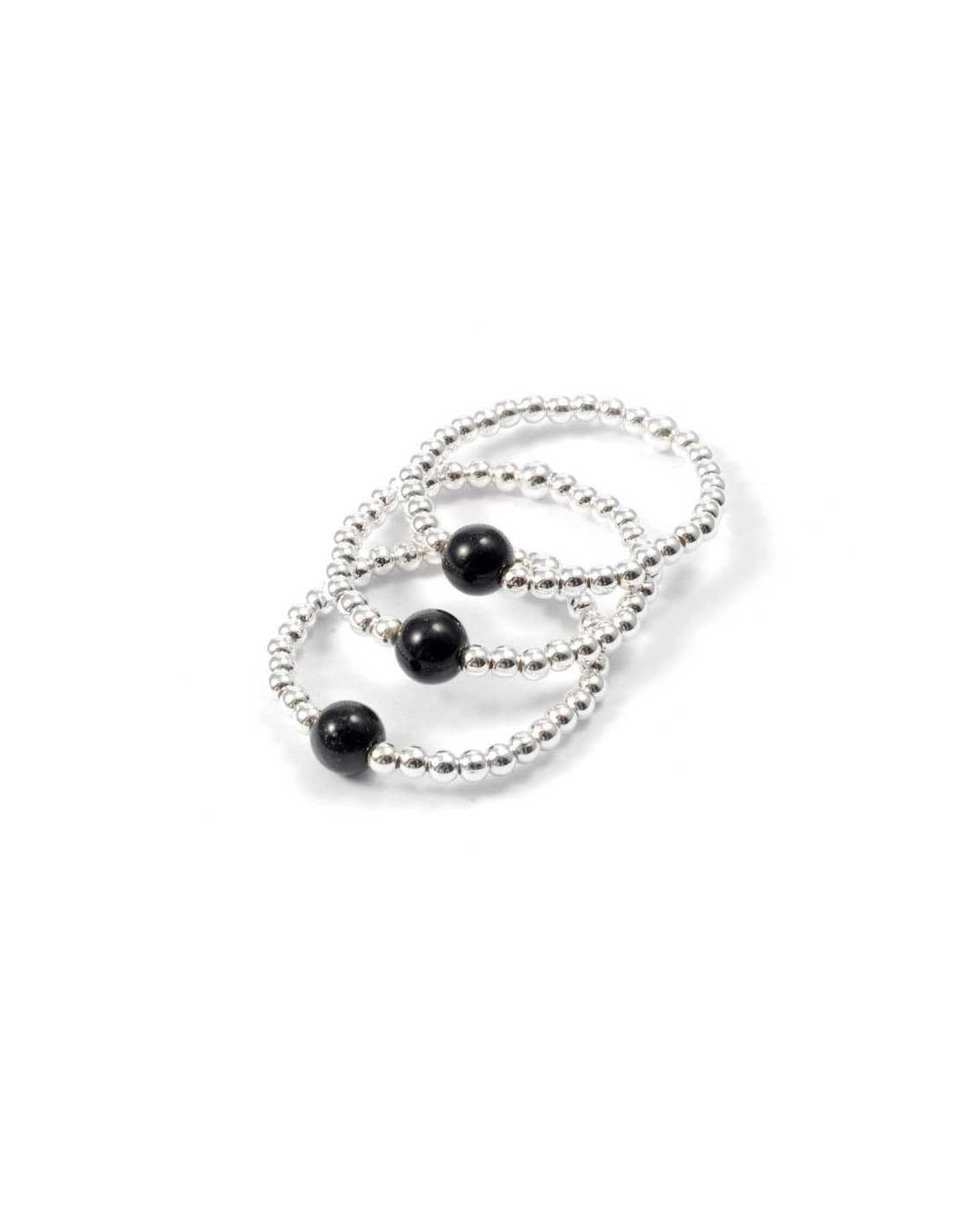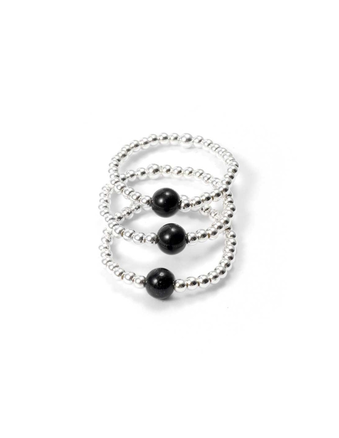 The stunning silver and stone beads have been thread-by-hand onto a resilient piece of elastic, and are available in four adjustable sizes – 50, 52, 54 or 56.