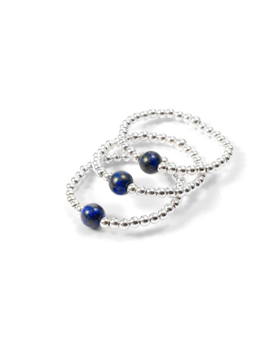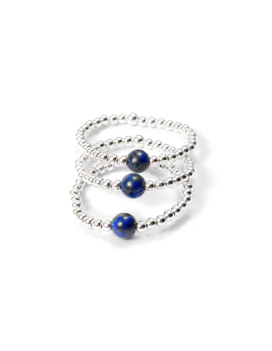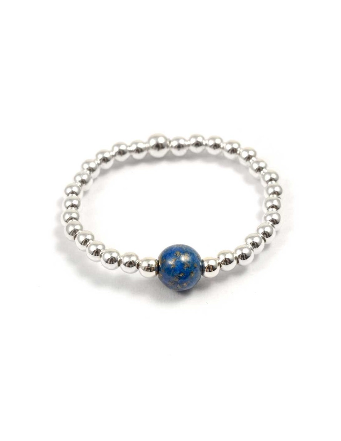The stunning silver and stone beads have been thread-by-hand onto a resilient piece of elastic, and are available in four adjustable sizes – 50, 52, 54 or 56.