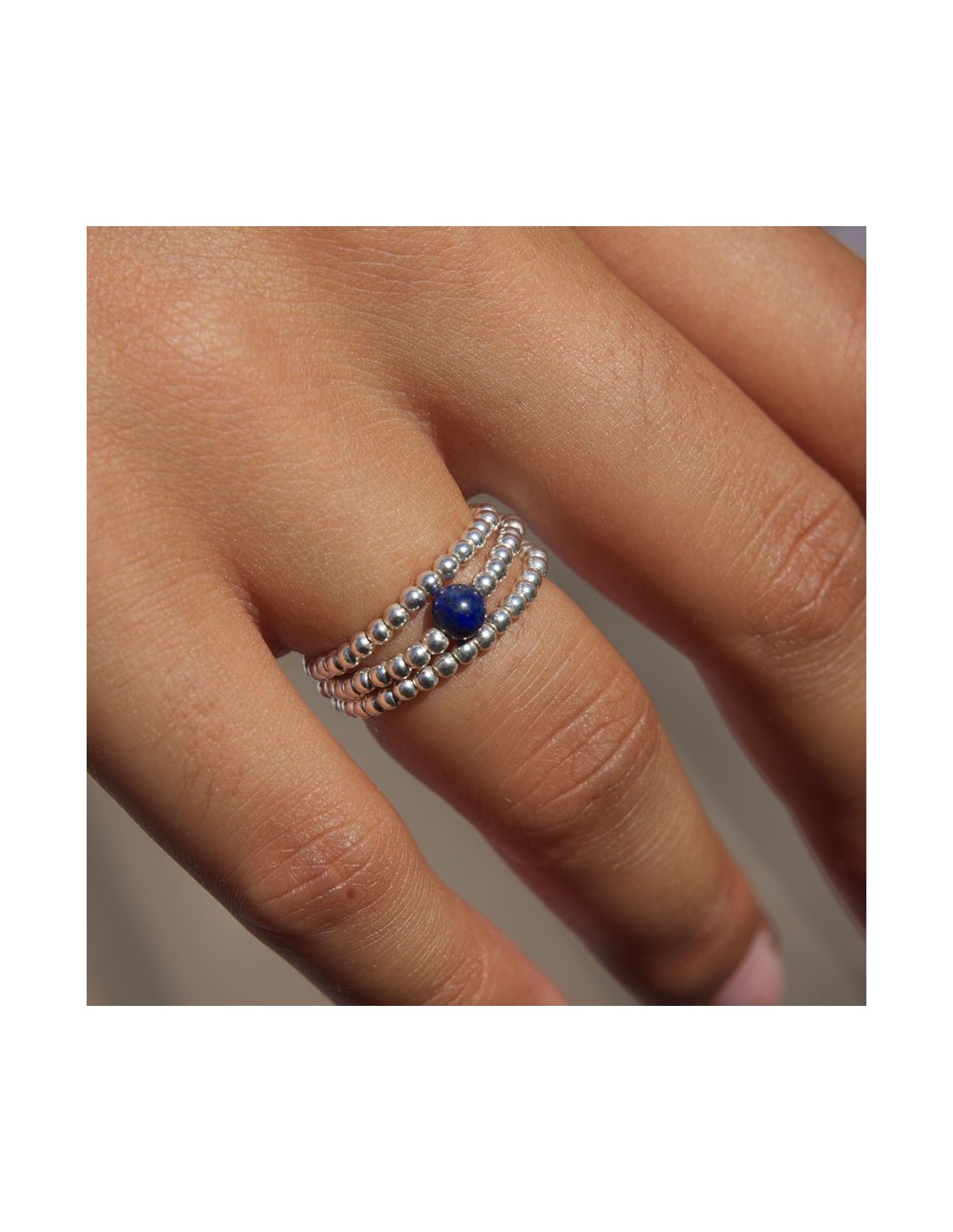 Unique Silver Beaded Gemstone Ring - Silver Jewellery - Boutique Nirvana