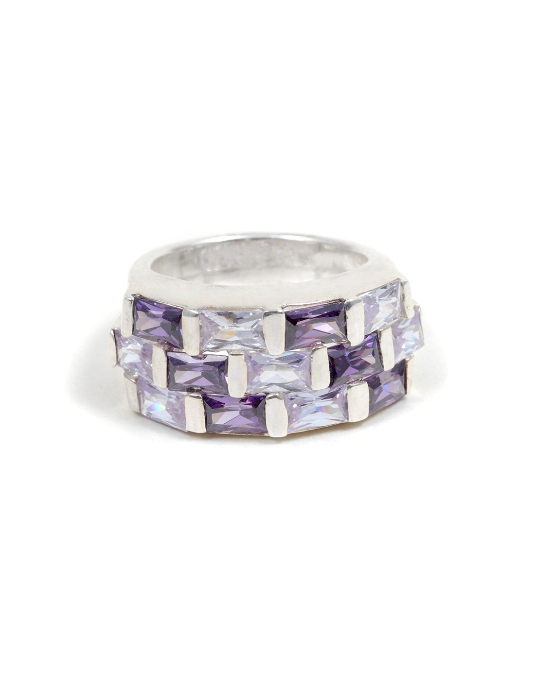 Bijou argent massif composé de trois rangés d’oxyde de zirconium asymétrique, de forme rectangle. La monture lisse et moderne. Elle se porte au quotidien.