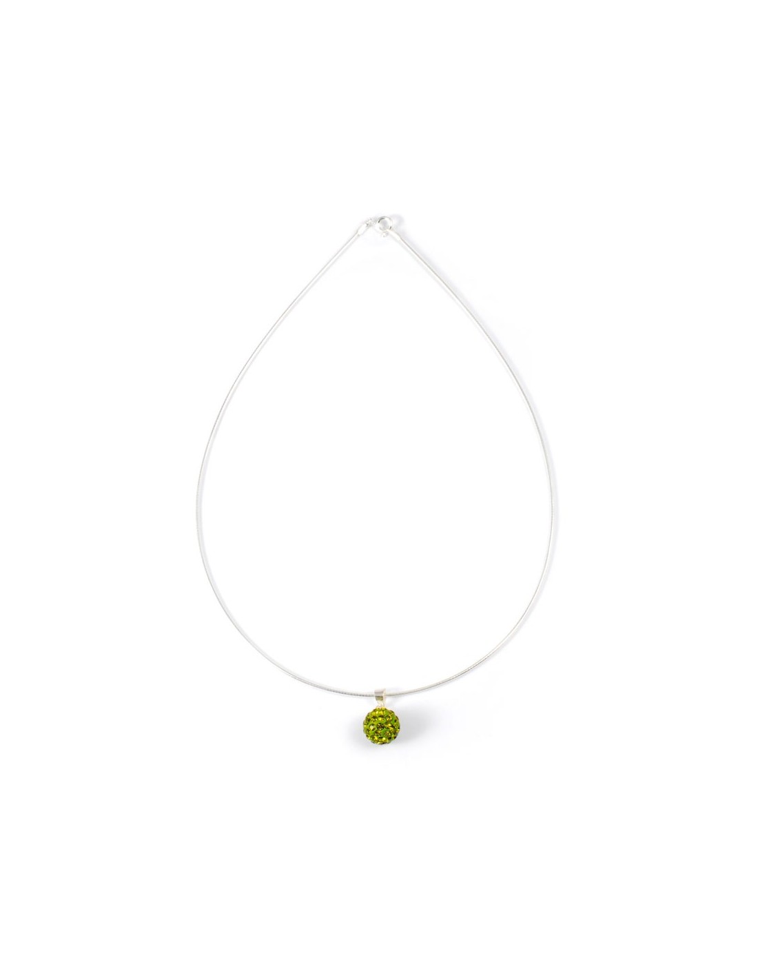 Ce collier est composé d’un câble en argent semi-rigide. Il est orné d’une jolie bille en argent agrémentée d’une multitude de petits strass colorés.