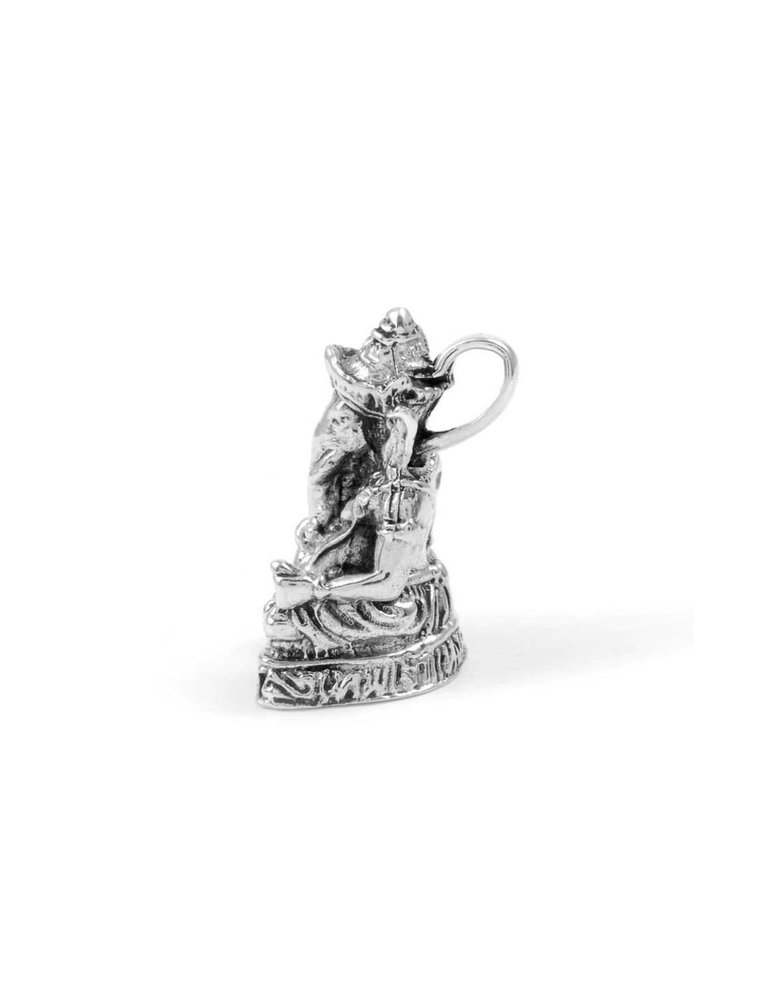 Pendentif Ganesh en Argent 925 . Ganesha a une tête d'éléphant sur un corp d'homme, il est en position méditation.Cette amulette est un protecteur de la famille.La bélière est fixe, derrière la tête de Ganesh.